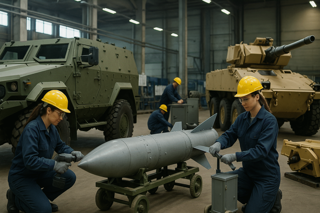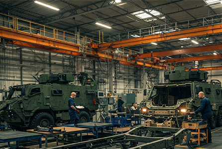 Fabrication of chassis structures, blast-resistant panels, suspension systems, and mounting brackets.